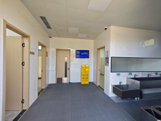 这座位于麦岛湾北侧,紧邻滨海步行道的公厕,圆润的造型搭配纯净白墙,玻璃窗户在阳光下折射出大海的澄澈蓝调,与小麦岛的自然景致浑然一体。内部设计更显贴心,独立第三卫生间解决特殊群体需求,24小时通风系统保障空气清新,智能显示屏实时更新温度、湿度、空气质量及剩余厕位,让等候不再盲目。24小时开放政策,充分满足市民游客不同时段的使用需求。据统计,淡季时公厕日客流量达600人次,旺季可攀升至1300人次。